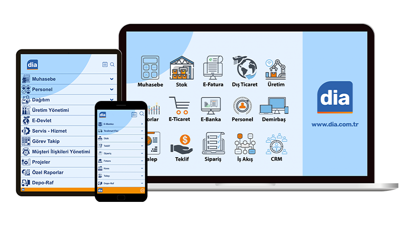 DİA, her sektörden işletmeye uygun çözümler sunarak onların dijital dönüşüm süreçlerini kolaylaştırır. Muhasebe ve ön muhasebe çözümleri, süreç yönetimi, özel raporlama ve teknik destek hizmetleriyle işletmenize tam kapsamlı bir hizmet sunar. DİA Yazılım, işletmelerin daha verimli, düzenli ve karlı bir şekilde çalışmalarını sağlamak için geliştirilmiştir.